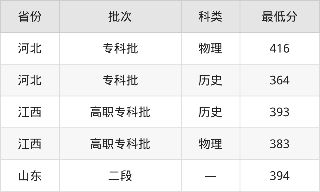 湖南现代物流职业技术学院邮政快递运营管理专业在全国各省最低录取分数线为364分(河北历史类),除此之外,在其余地区的最低分为江西物理类383分、山东394分,以上数据均为2024年数据,供2025年高考生参考。