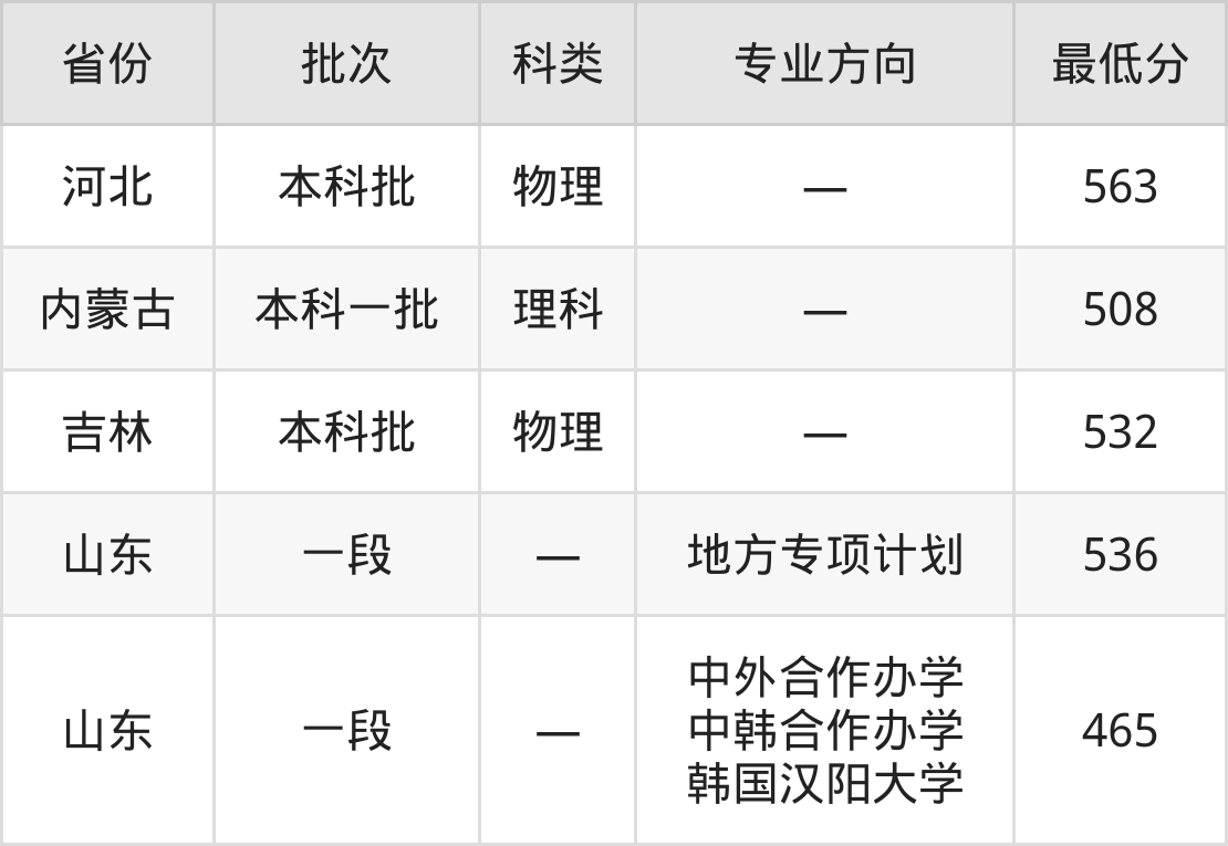| 中外合作办学 中韩合作办学 韩国汉阳大学 | 120 |