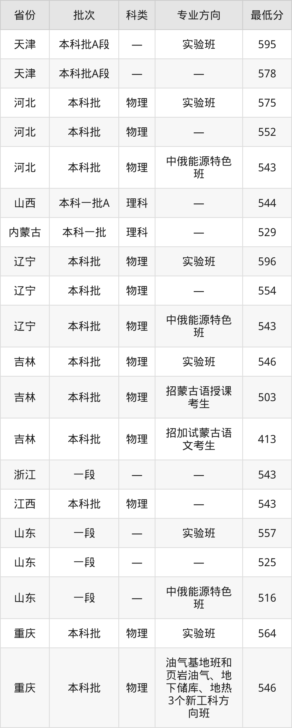 | 物理类 | 第021组( 八省区对等) | 学生可以自主 选择油气基地 班和页岩油气 、地下储库、 地热3个新工 科方向班就读 ;八省区对等 协作计划 | 3 |