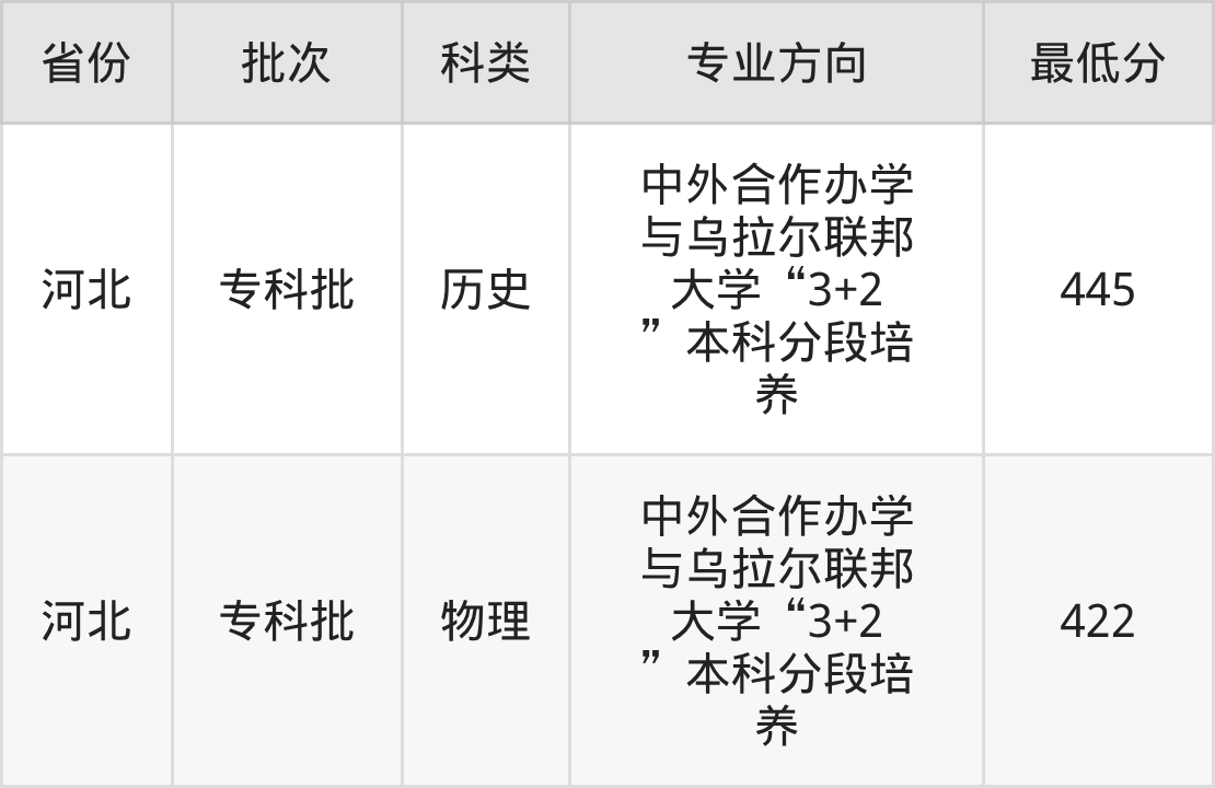 | 专业组81( 中外合作) | 中外合作办学 与乌拉尔联邦 大学“3+2 ”本科分段培 养 | 8 |