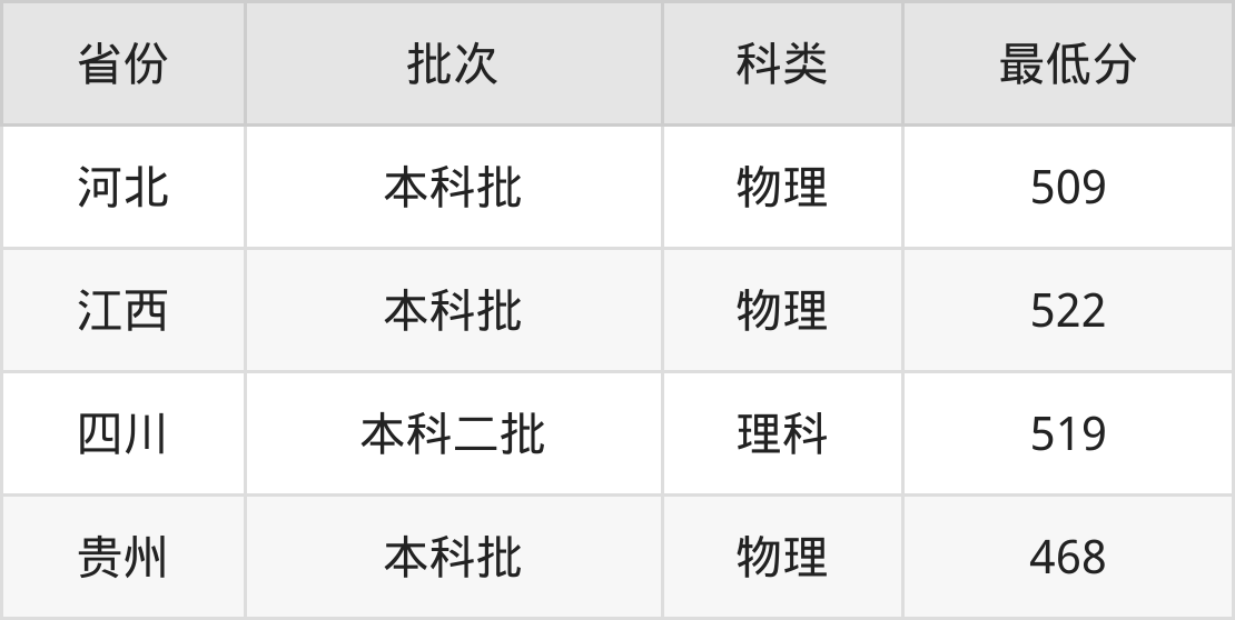 福建江夏学院数字经济专业在全国各省最低录取分数线为468分(贵州物理类),除此之外,在其余地区的最低分为河北物理类509分、江西物理类522分、四川理科519分,以上数据均为2024年数据,供2025年高考生参考。