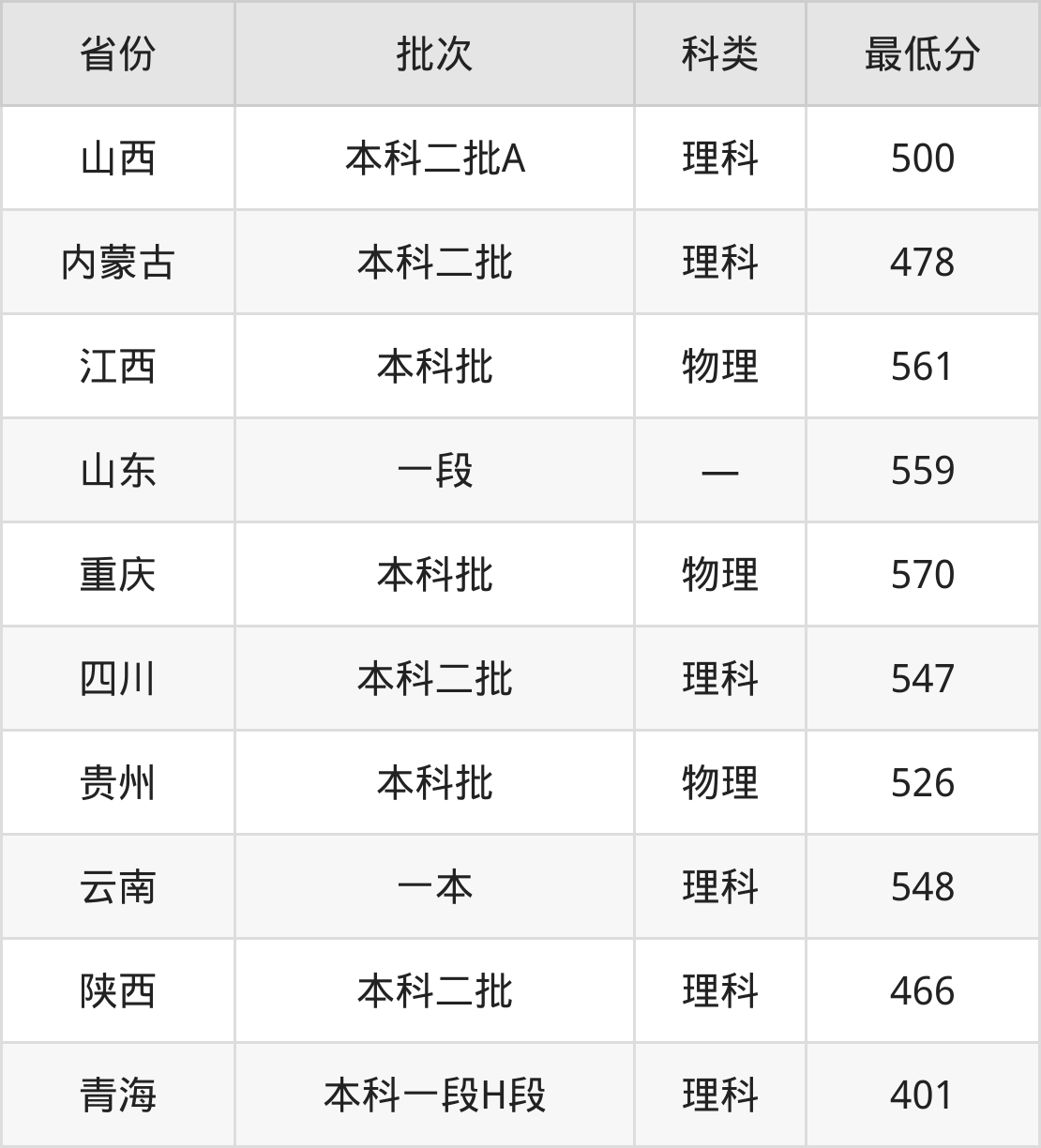 山西:理科最低500分