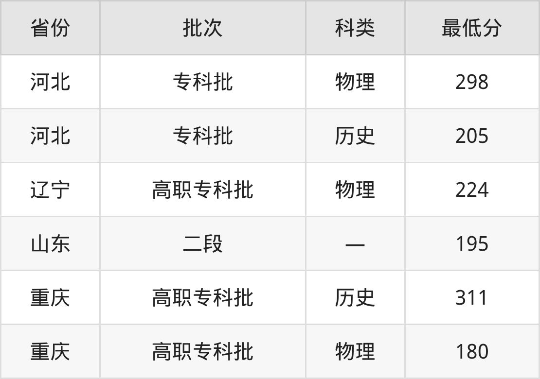 民办四川天一学院医学检验技术专业在全国各省最低录取分数线为180分(重庆物理类),除此之外,在其余地区的最低分为河北历史类205分、辽宁物理类224分、山东195分,以上数据均为2025年数据,供2026年高考生参考。