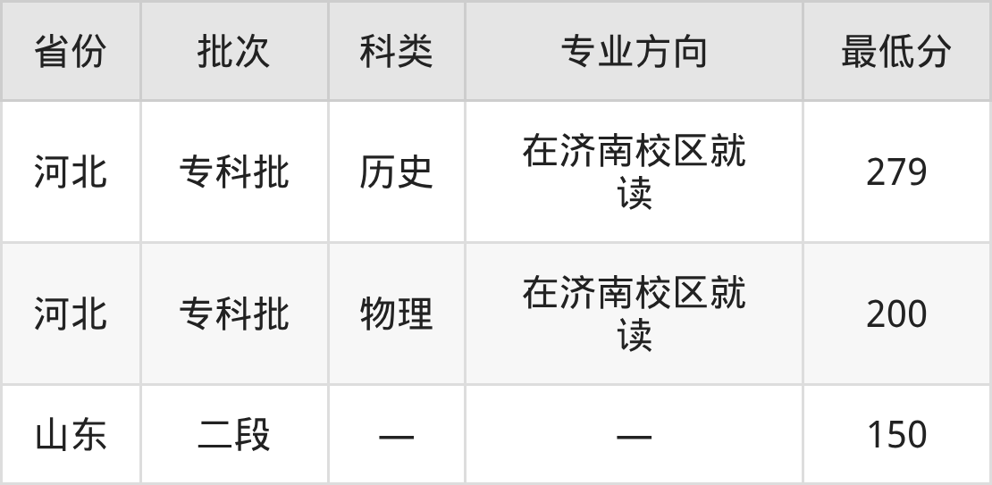 山东外事职业大学数字媒体技术专业录取分数线从150分到279分不等,最低分数线如下: