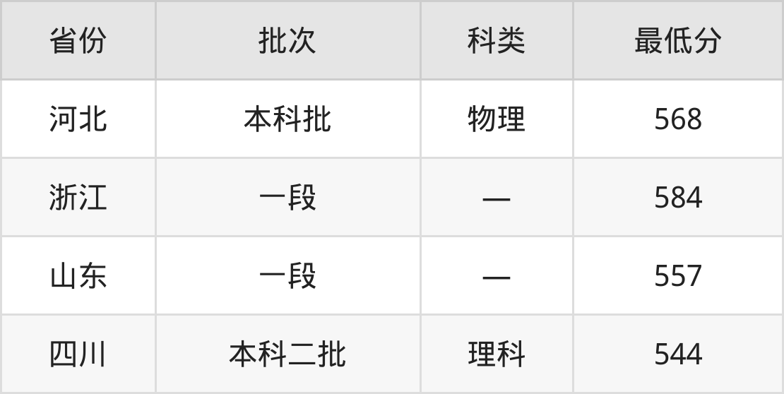 湖南农业大学计算机科学与技术专业在全国各省最低录取分数线为544分(四川理科),除此之外,在其余地区的最低分为河北物理类568分、浙江584分、山东557分,以上数据均为2024年数据,供2025年高考生参考。