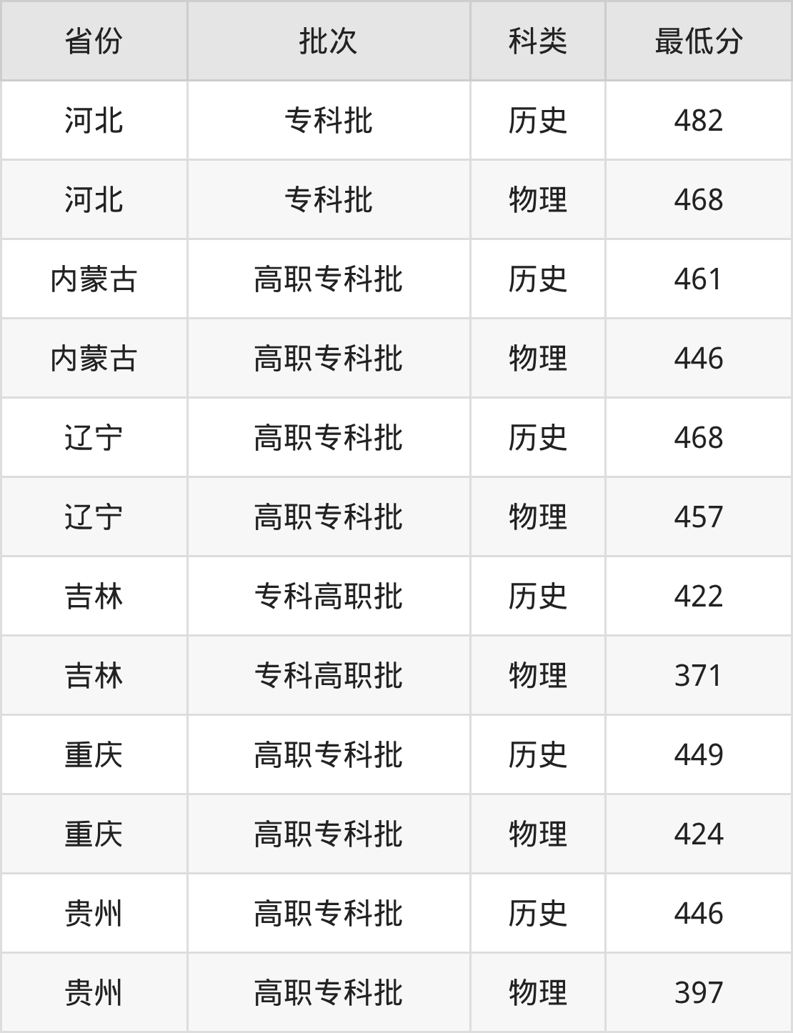 唐山职业技术学院口腔医学专业录取分数线从371分到482分不等,最低分数线如下: