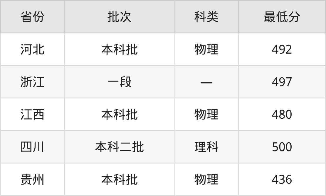 湖南工业大学科技学院计算机科学与技术专业在全国各省最低录取分数线为436分(贵州物理类),除此之外,在其余地区的最低分为河北物理类492分、浙江497分、江西物理类480分、四川理科500分,以上数据均为2024年数据,供2025年高考生参考。