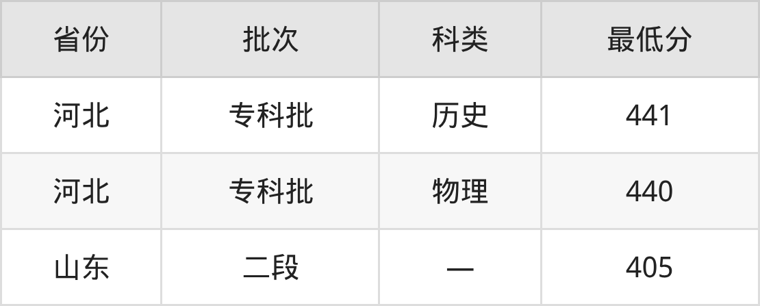 河南应用技术职业学院机电一体化技术专业录取分数线从405分到441分不等,最低分数线如下: