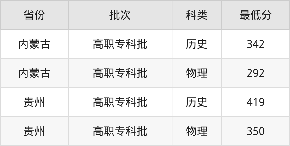 怀化职业技术学院畜牧兽医专业在全国各省最低录取分数线为292分(内蒙古物理类),除此之外,在其余地区的最低分为贵州物理类350分,以上数据均为2025年数据,供2026年高考生参考。