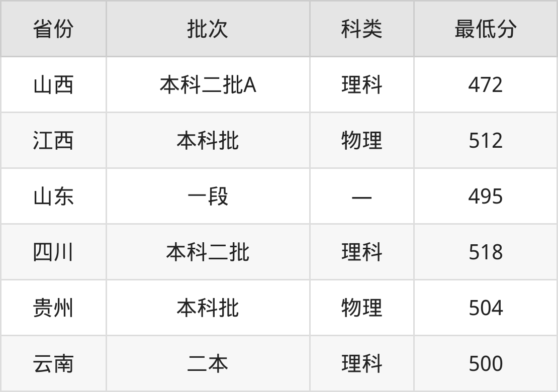 湖北民族大学化学专业在全国各省最低录取分数线为472分(山西理科),除此之外,在其余地区的最低分为四川理科518分、贵州物理类504分、云南理科500分、江西物理类512分等,以上数据均为2024年数据,供2025年高考生参考。