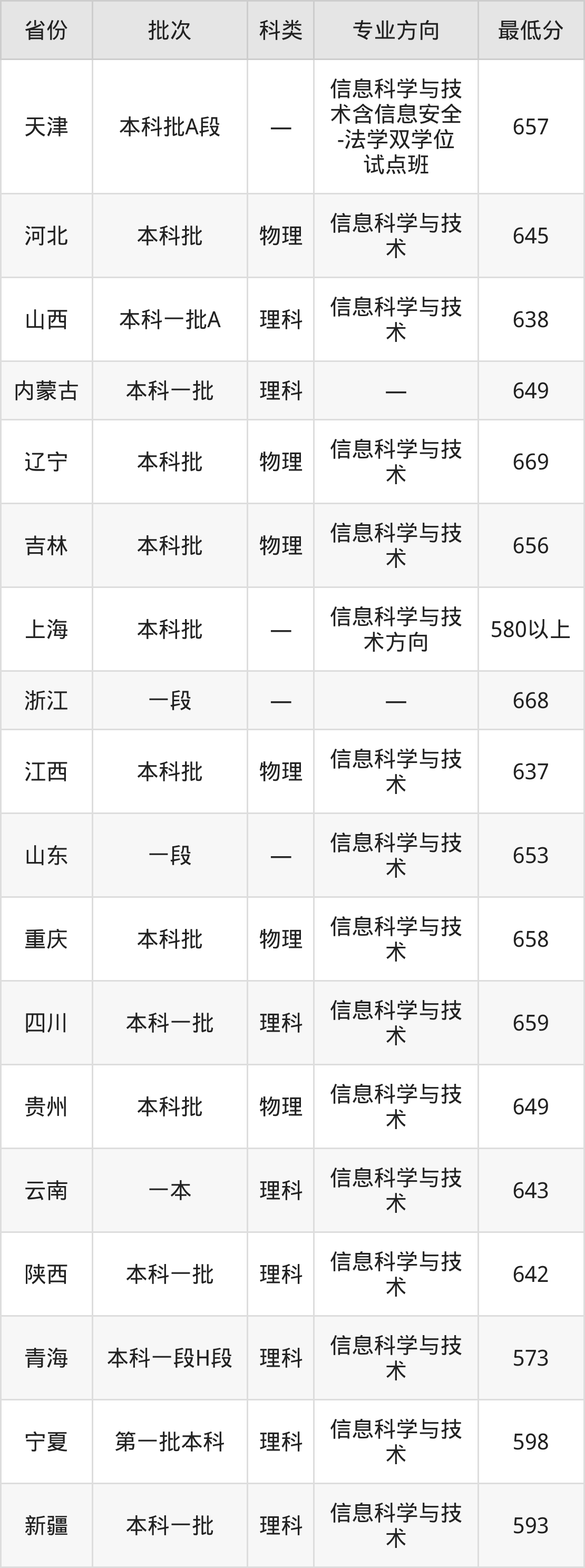 | 07组 | 信息科学与技 术含信息安全 -法学双学位 试点班 | 88 |