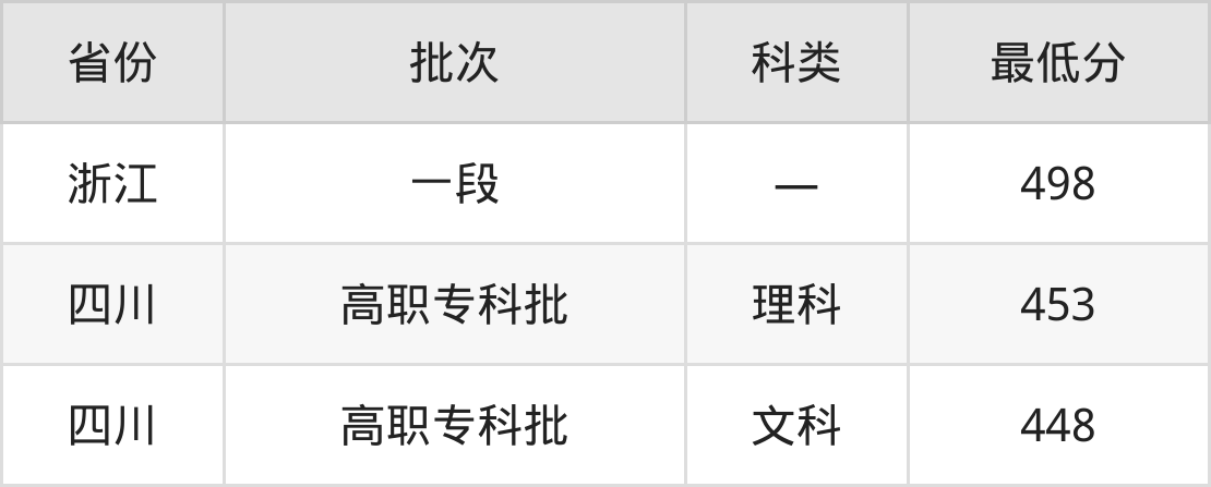 宁波卫生职业技术学院医学营养专业在全国各省最低录取分数线为448分(四川文科),除此之外,在其余地区的最低分为浙江498分,以上数据均为2024年数据,供2025年高考生参考。