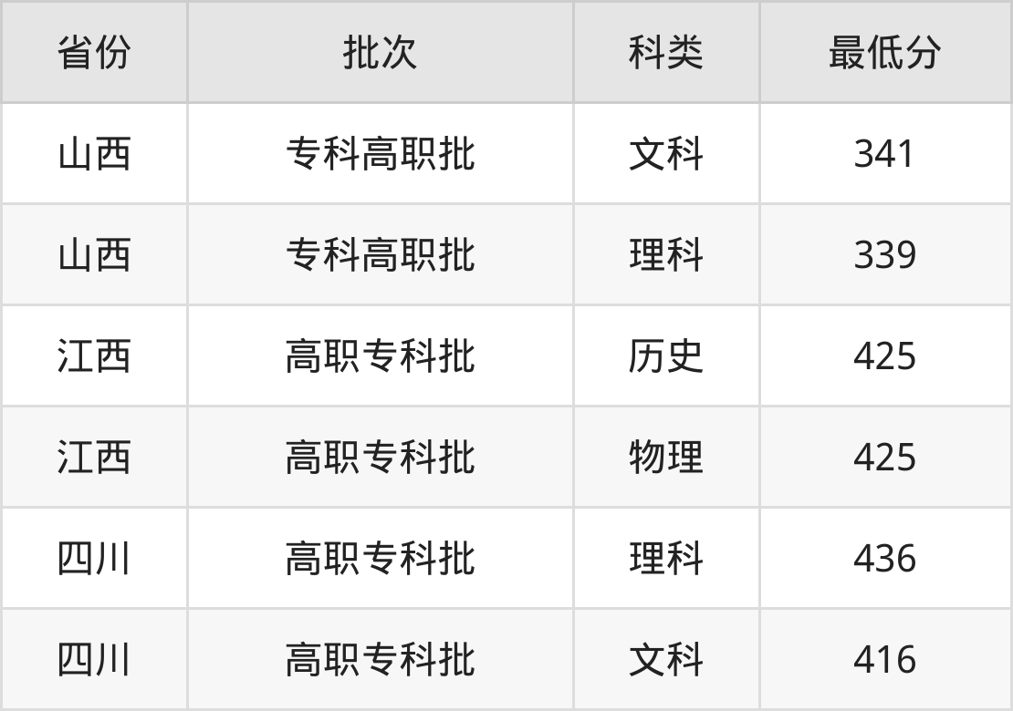 湖北交通职业技术学院工程造价专业在全国各省最低录取分数线为339分(山西理科),除此之外,在其余地区的最低分为江西历史类425分、四川文科416分,以上数据均为2024年数据,供2025年高考生参考。