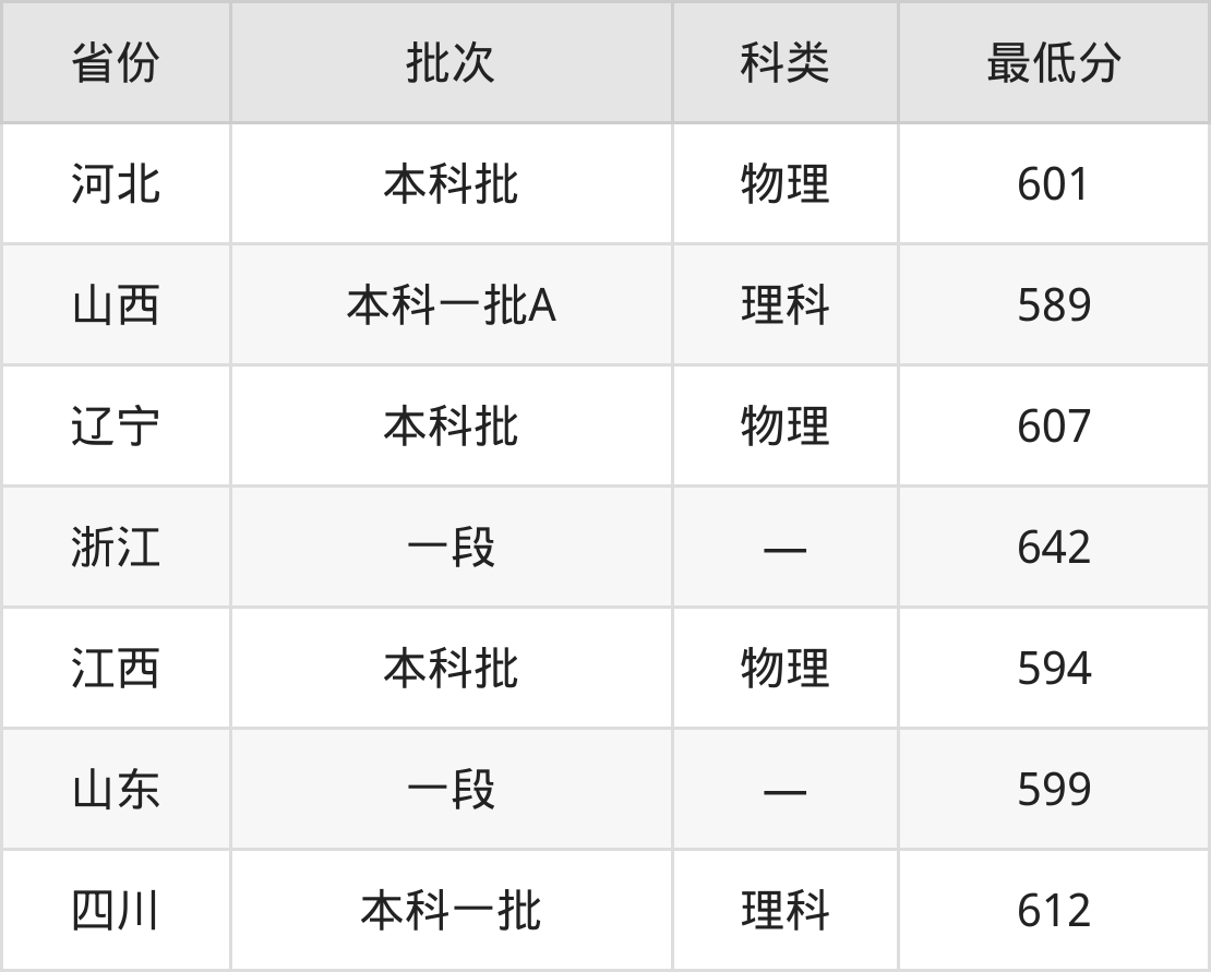 南京农业大学统计学专业在全国各省最低录取分数线为589分(山西理科),除此之外,在其余地区的最低分为江西物理类594分、山东599分、四川理科612分、河北物理类601分等,以上数据均为2024年数据,供2025年高考生参考。
