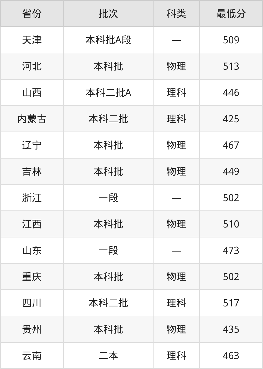 天津农学院水产养殖学专业录取分数线从425分到517分不等,在部分地区的最低分数线如下: