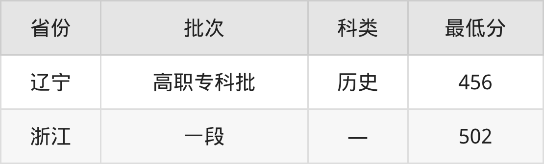 浙江商业职业技术学院国际经济与贸易专业录取分数线从456分到502分不等,最低分数线如下: