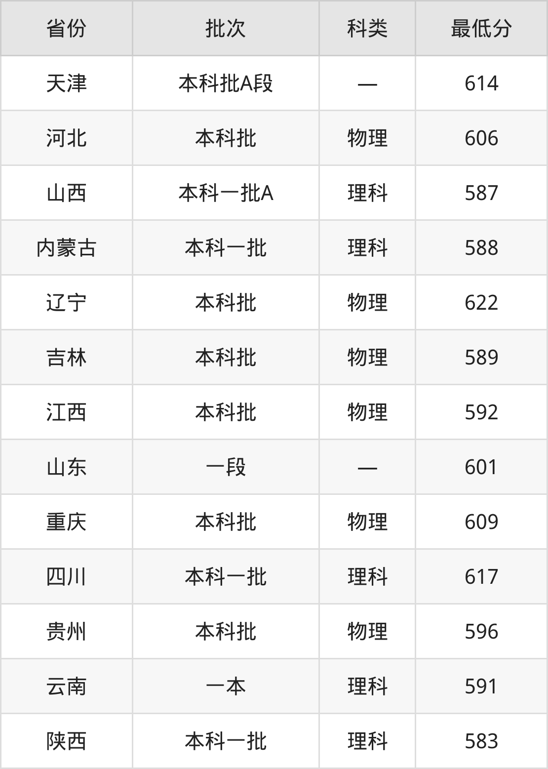 太原理工大学人工智能专业录取分数线从583分到622分不等,在部分地区的最低分数线如下: