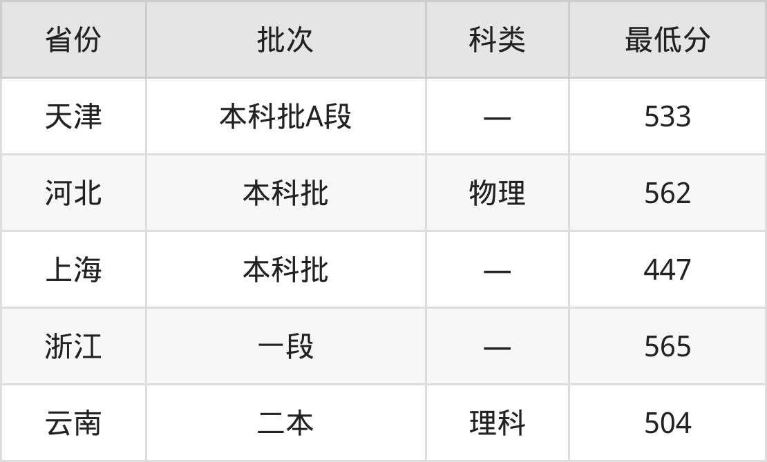 云南:理科最低504分