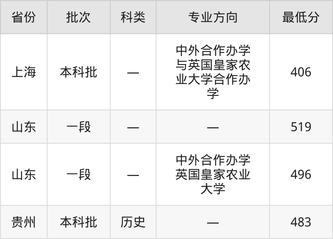 青岛农业大学物流管理专业录取分数线从406分到519分不等,最低分数线如下:
