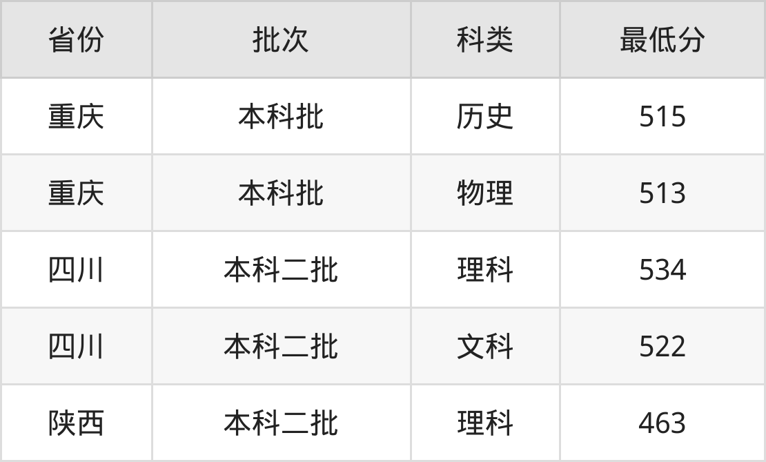 重庆:历史组最低515分、物理组最低513分
