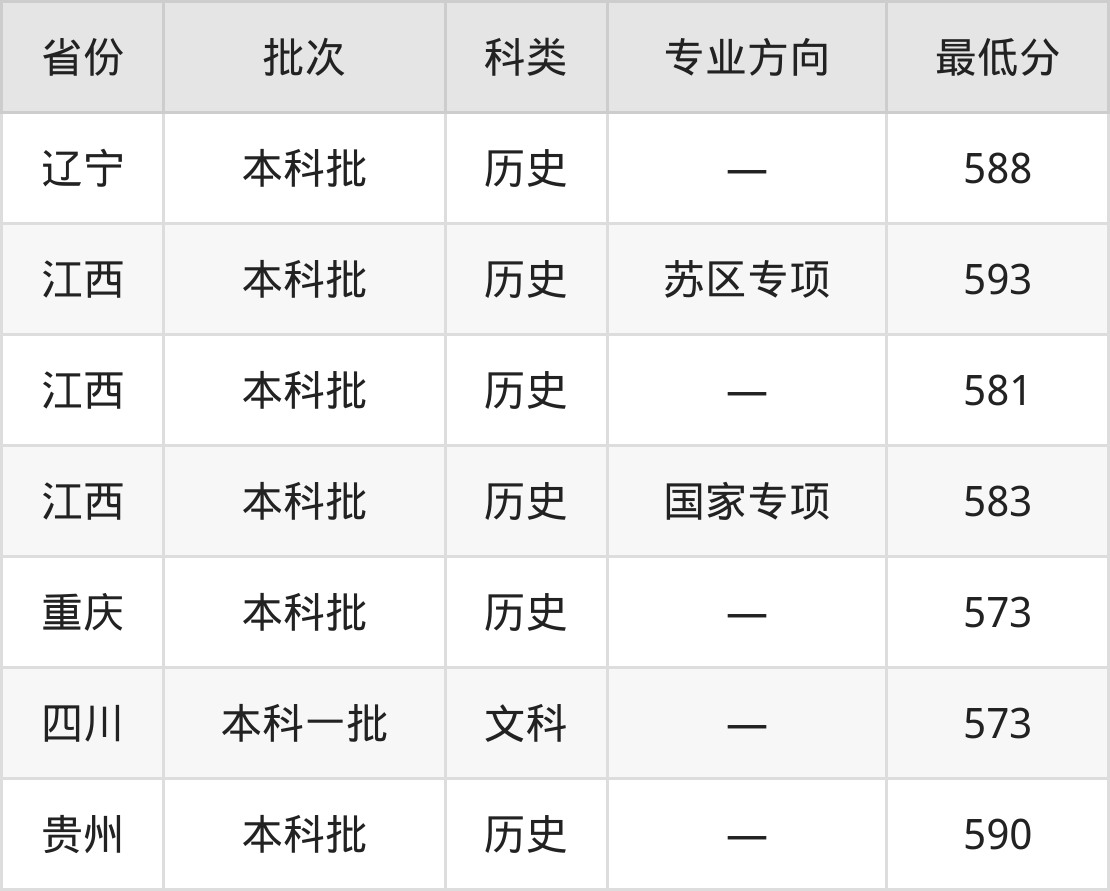 南昌大学档案学专业录取分数线从573分到593分不等,最低分数线如下: