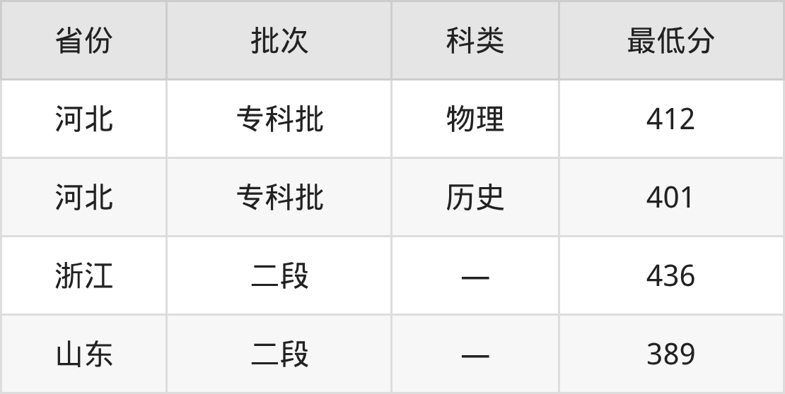 安徽国际商务职业学院市场营销专业在全国各省最低录取分数线为389分(山东),除此之外,在其余地区的最低分为河北历史类401分、浙江436分,以上数据均为2025年数据,供2026年高考生参考。