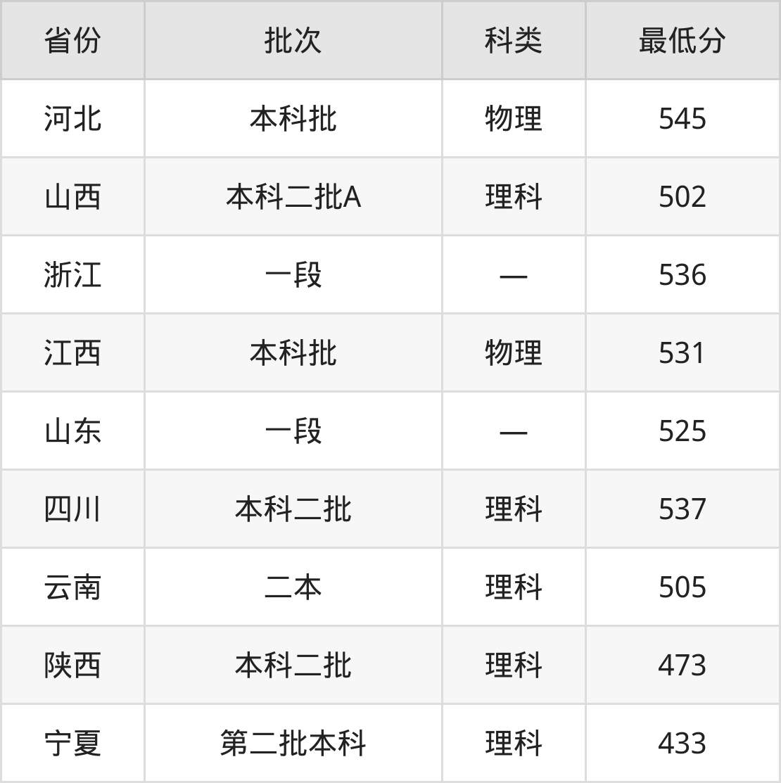 宁夏:理科最低433分