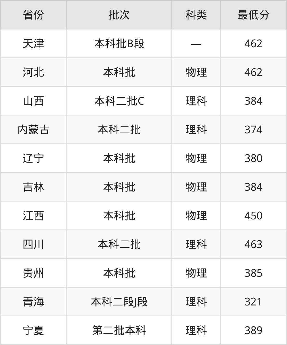 内蒙古:理科最低374分