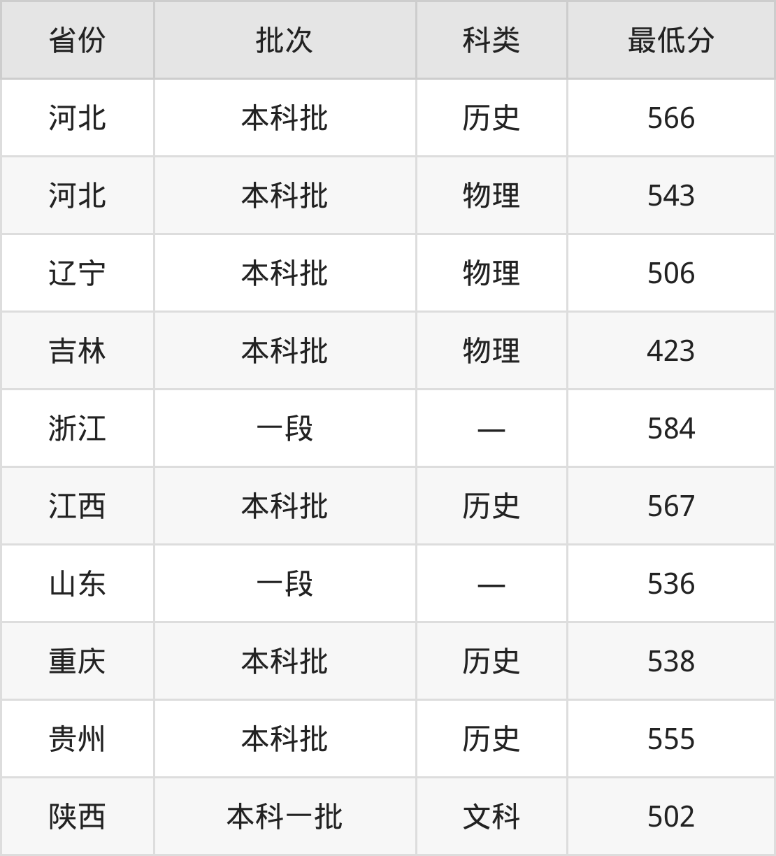 南华大学英语专业录取分数线从423分到584分不等,最低分数线如下: