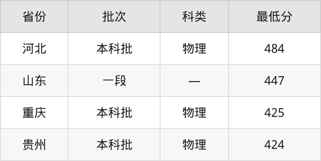 福州理工学院计算机科学与技术专业在全国各省最低录取分数线为424分(贵州物理类),除此之外,在其余地区的最低分为河北物理类484分、山东447分、重庆物理类425分,以上数据均为2025年数据,供2026年高考生参考。