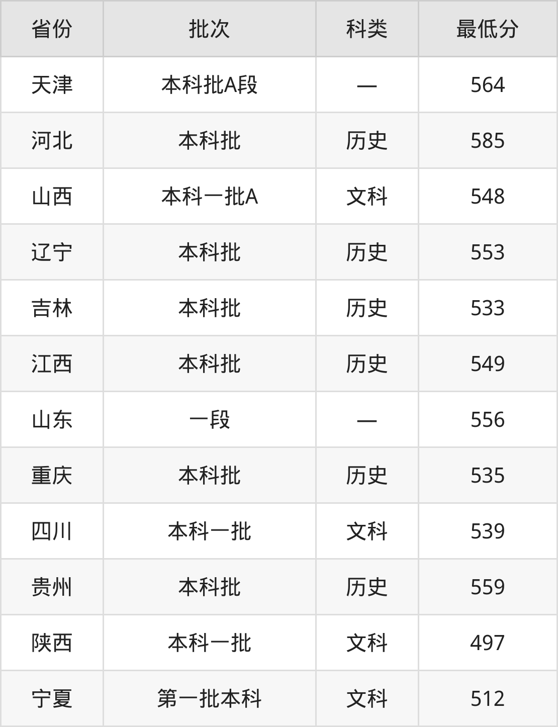 东北石油大学汉语言文学专业录取分数线从497分到585分不等,在部分地区的最低分数线如下: