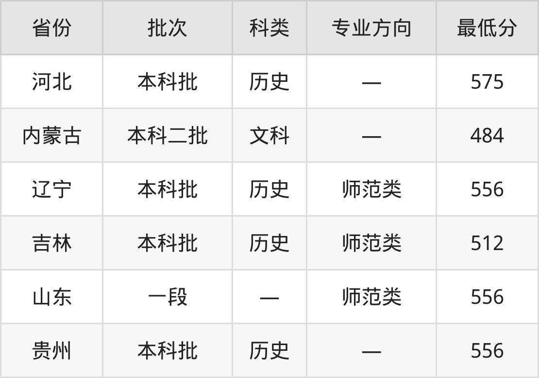 吉首大学汉语言文学专业在全国各省最低录取分数线为484分(内蒙古文科),除此之外,在其余地区的最低分为贵州历史类556分、河北历史类575分、辽宁历史类556分、吉林历史类512分等,以上数据均为2024年数据,供2025年高考生参考。
