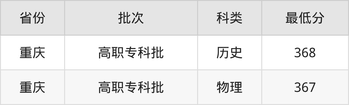 信阳职业技术学院新能源汽车技术专业录取分数线从367分到368分不等,最低分数线如下: