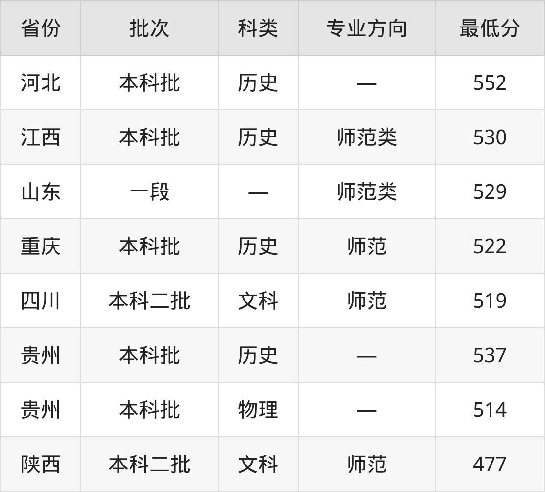 遵义师范学院汉语言文学专业录取分数线从477分到552分不等,最低分数线如下: