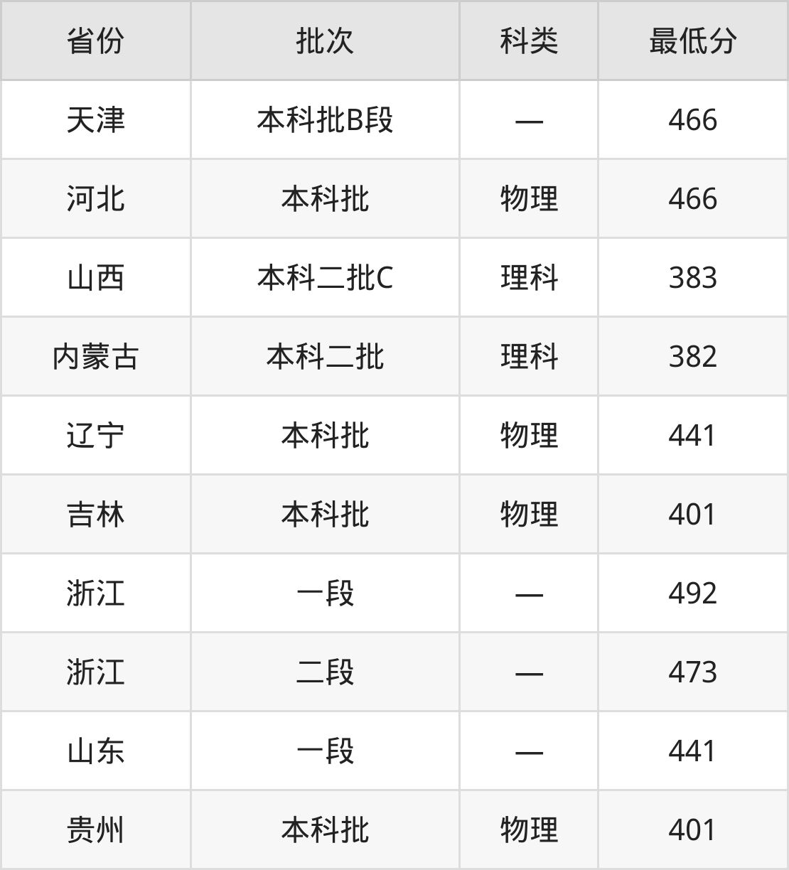 长春光华学院电气工程及其自动化专业在全国各省最低录取分数线为382分(内蒙古理科),除此之外,在其余地区的最低分为贵州物理类401分、天津466分、山东441分、吉林物理类401分等,以上数据均为2024年数据,供2025年高考生参考。