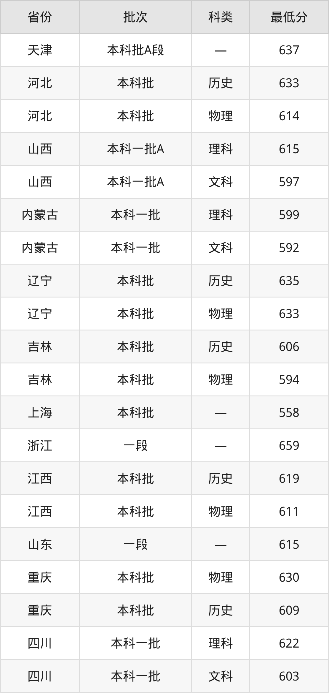 湖南大学金融学专业录取分数线从523分到659分不等,在部分地区的最低分数线如下: