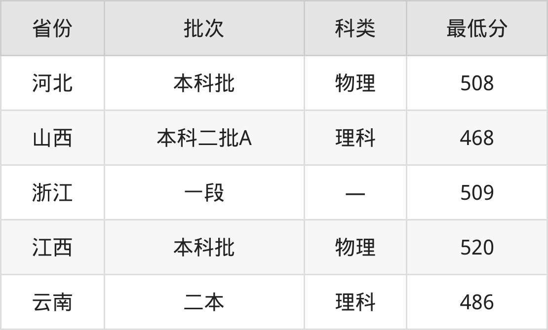 绍兴文理学院生物科学专业录取分数线从468分到520分不等,最低分数线如下: