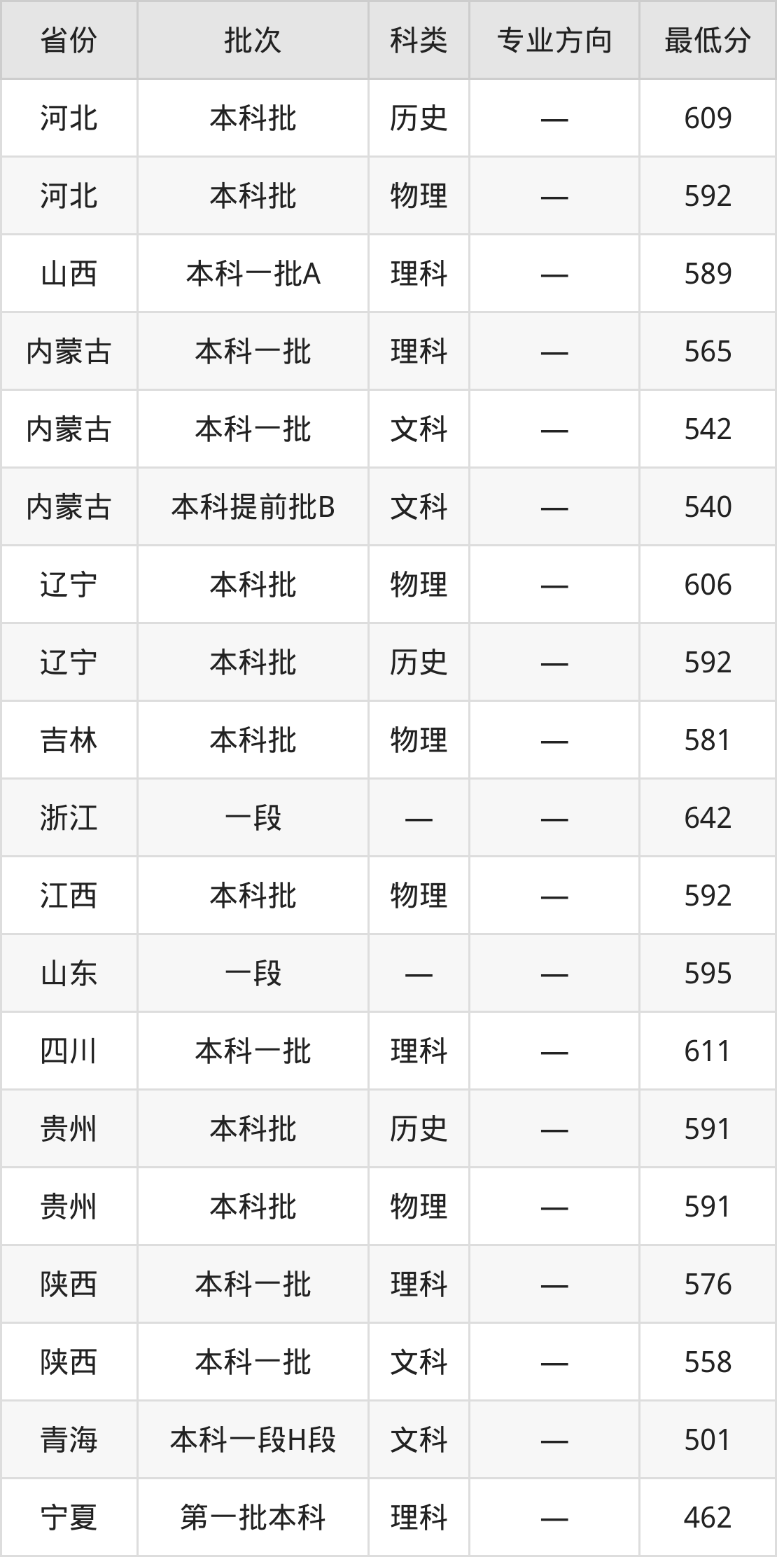 中国矿业大学工商管理类专业在全国各省最低录取分数线为462分(宁夏理科),除此之外,在其余地区的最低分为贵州历史类591分、陕西文科558分、山西理科589分、内蒙古文科540分等,以上数据均为2024年数据,供2025年高考生参考。