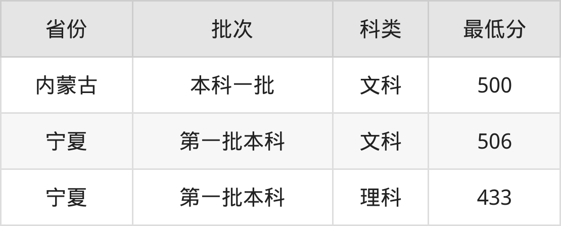福建农林大学农村区域发展专业在全国各省最低录取分数线为433分(宁夏理科),除此之外,在其余地区的最低分为内蒙古文科500分,以上数据均为2024年数据,供2025年高考生参考。