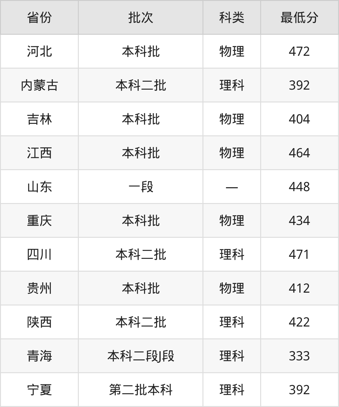 内蒙古:理科最低392分