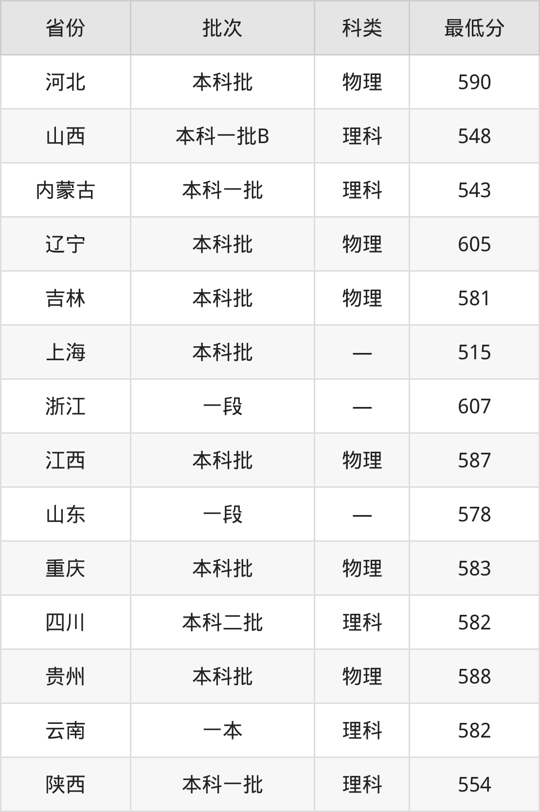 桂林电子科技大学电子信息工程专业在全国各省最低录取分数线为515分(上海),除此之外,在其余地区的最低分为贵州物理类588分、浙江607分、江西物理类587分、内蒙古理科543分等,以上数据均为2024年数据,供2025年高考生参考。