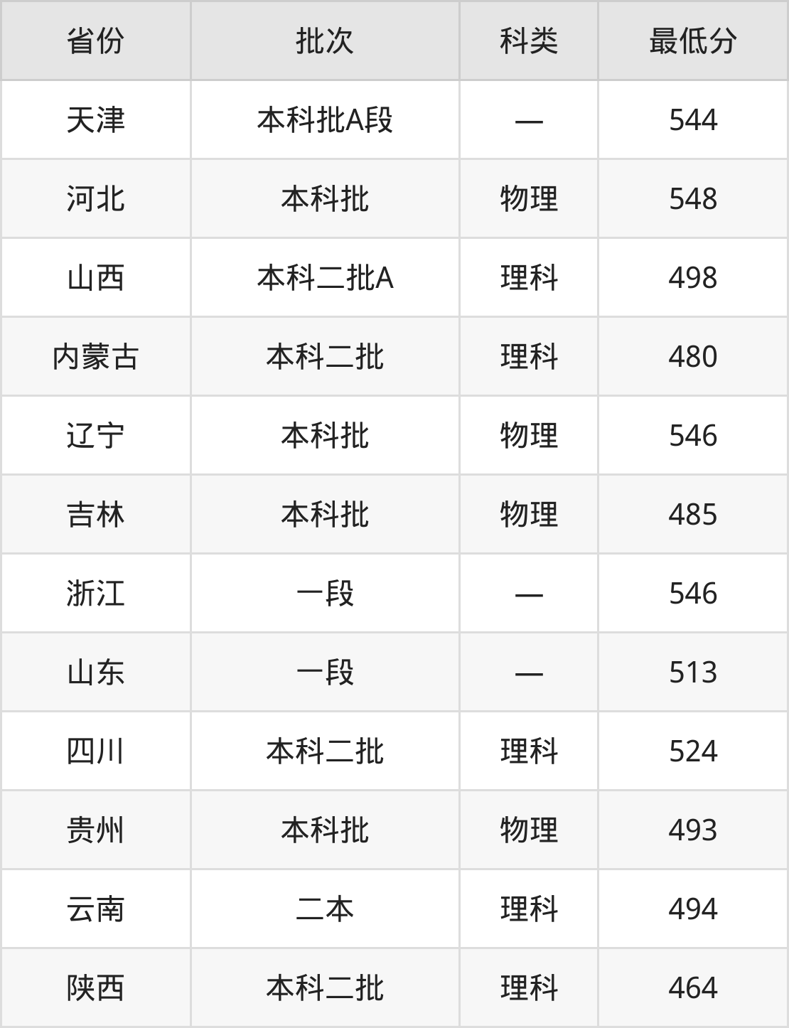 山东工商学院电气工程及其自动化专业在全国各省最低录取分数线为464分(陕西理科),除此之外,在其余地区的最低分为四川理科524分、云南理科494分、天津544分、河北物理类548分等,以上数据均为2024年数据,供2025年高考生参考。