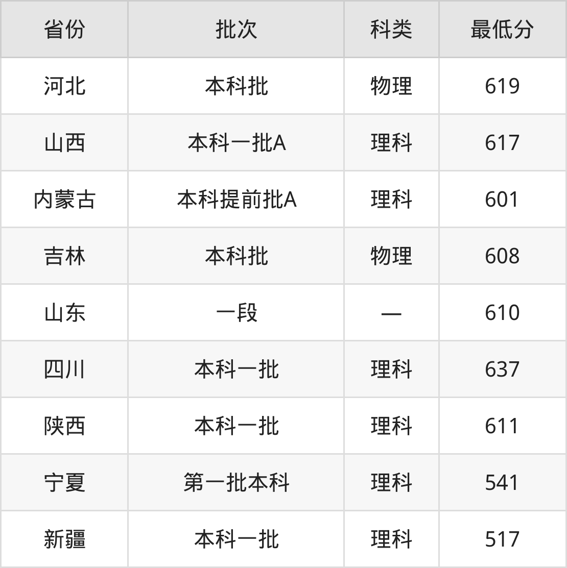 内蒙古:理科最低601分