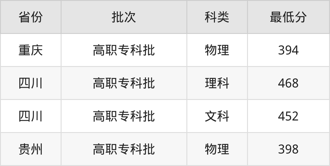 桂林航天工业学院动漫制作技术专业在全国各省最低录取分数线为394分(重庆物理类),除此之外,在其余地区的最低分为四川文科452分、贵州物理类398分,以上数据均为2024年数据,供2025年高考生参考。