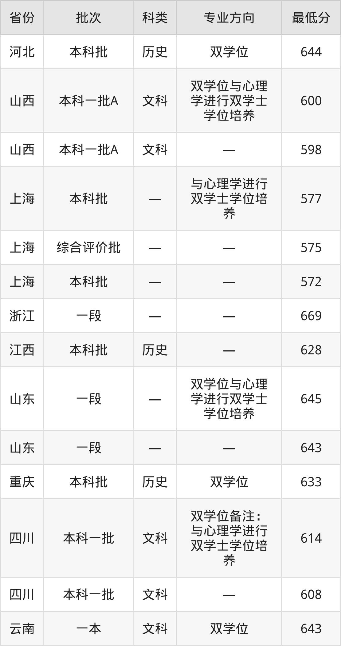 华东师范大学法学专业录取分数线从572分到671分不等,最低分数线如下: