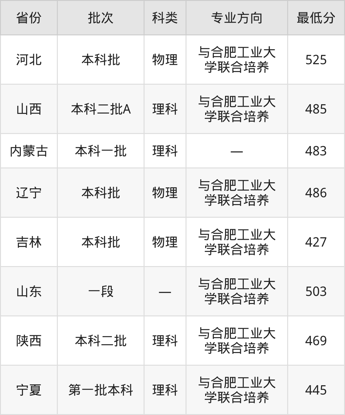 | 理科 | 与合肥工业大 学联合培养 | 8 |