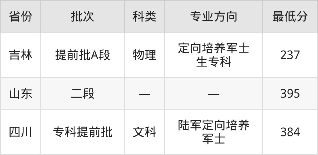 潍坊工程职业学院现代通信技术专业在全国各省最低录取分数线为237分(吉林物理类),除此之外,在其余地区的最低分为山东395分、四川文科384分,以上数据均为2024年数据,供2025年高考生参考。