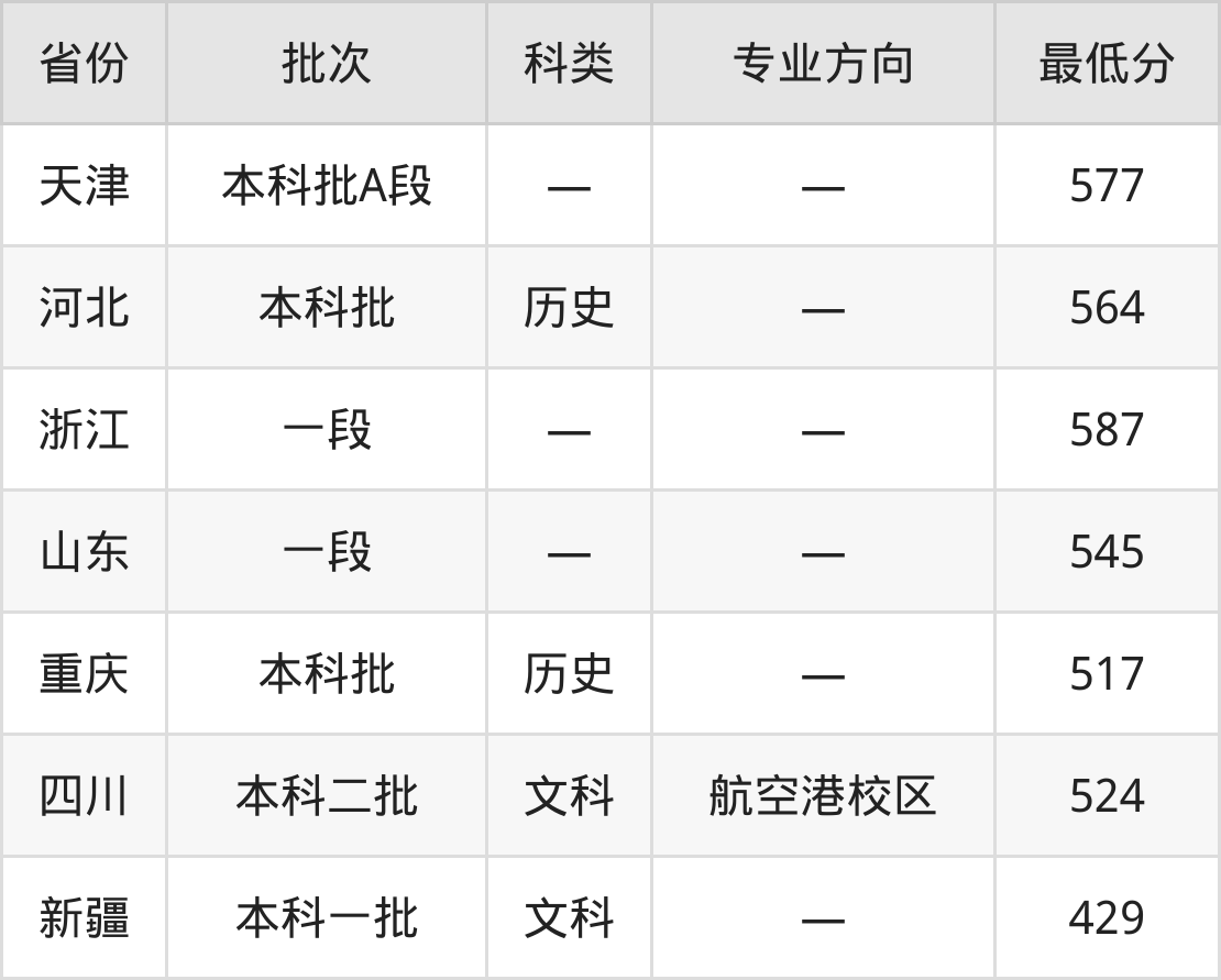 成都信息工程大学翻译专业录取分数线从429分到587分不等,最低分数线如下: