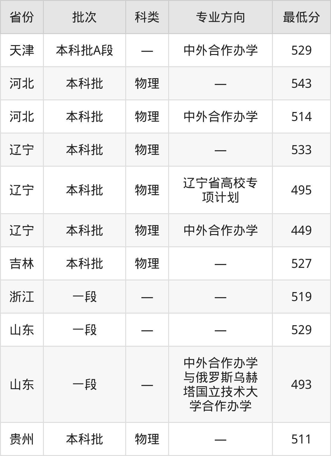 | 物理类 | 中外合作办学 | 110 |