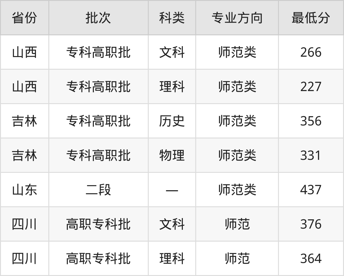 齐齐哈尔高等师范专科学校小学英语教育专业录取分数线从227分到437分不等,最低分数线如下: